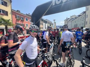 Die heutige erste Etappe bringt uns von Lienz in Österreich nach Sillian in Italien. Uns erwarten 115 km und 1.500 Höhenmeter. Der Start ist erst um 12:00 Uhr. Das ist neu.