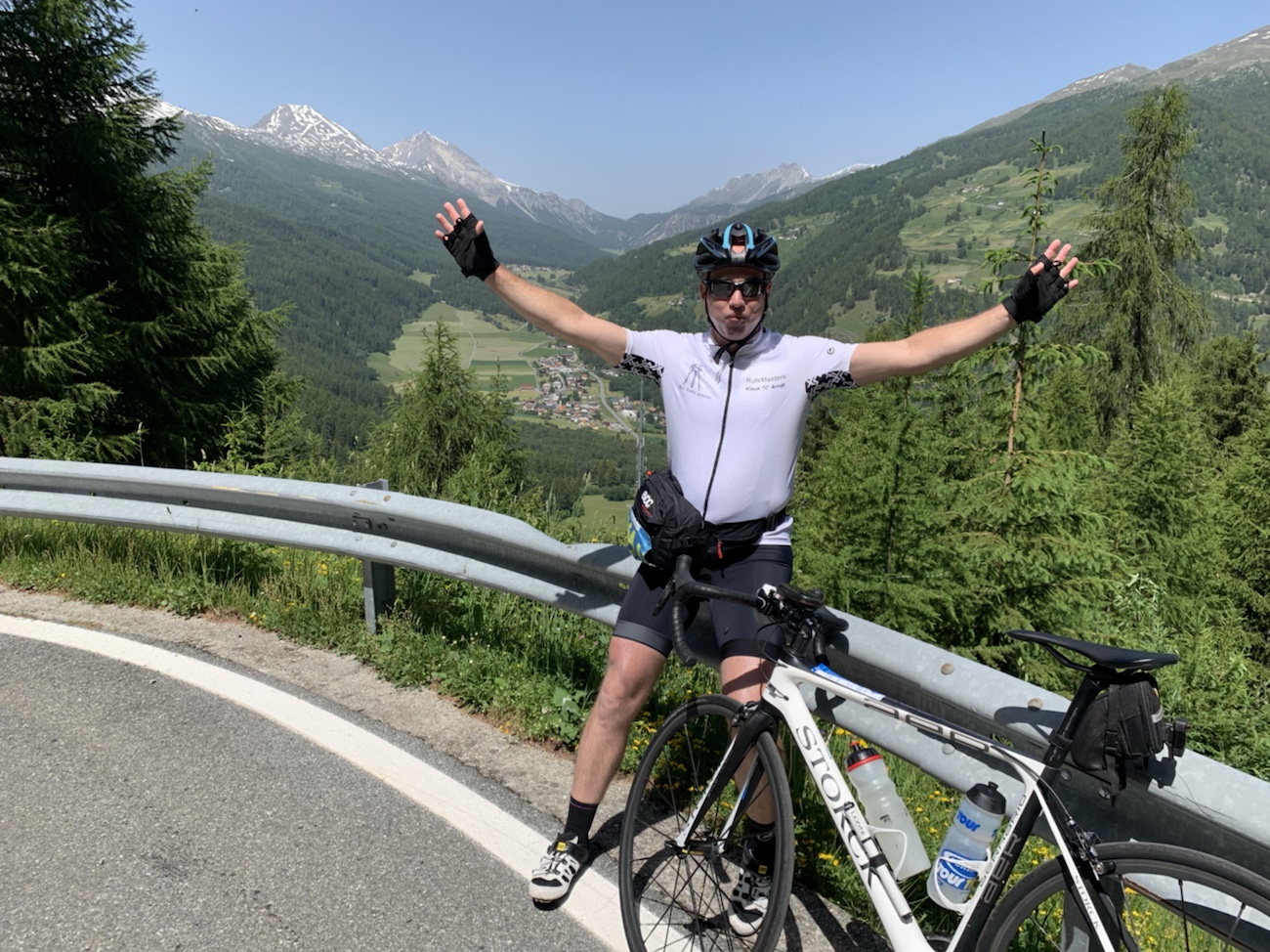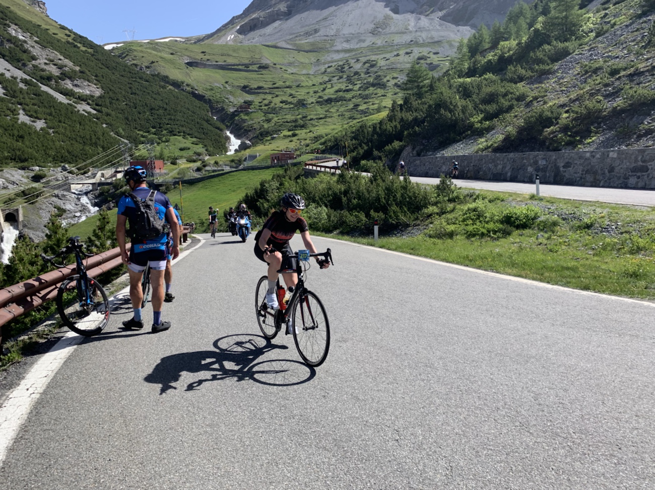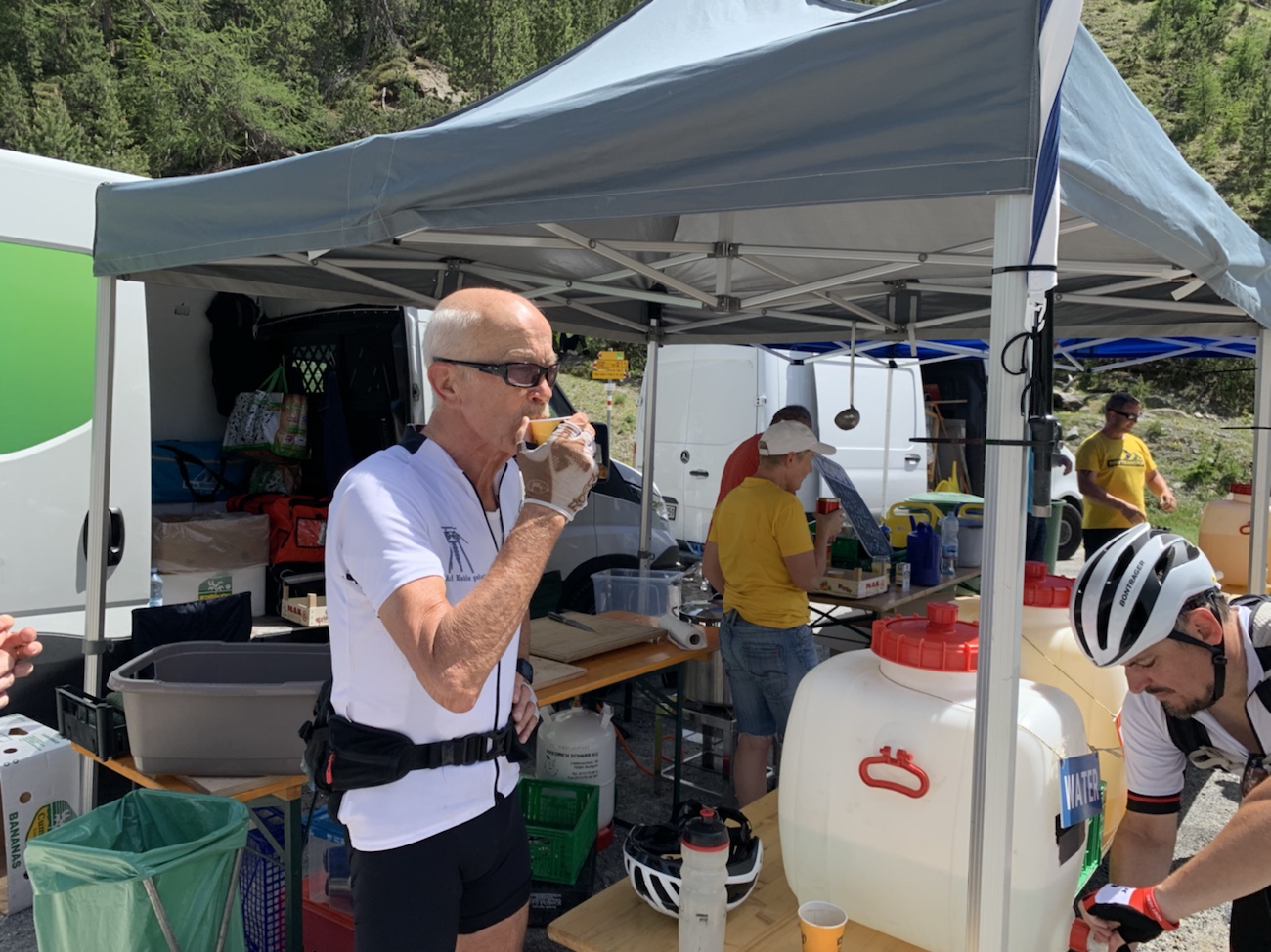 Den Ofenpass rauf gibt es für uns einen Shuttlebus, dass heißt 2,5 km im Besenwagen mit Manftred und Christian – die Engel für uns.