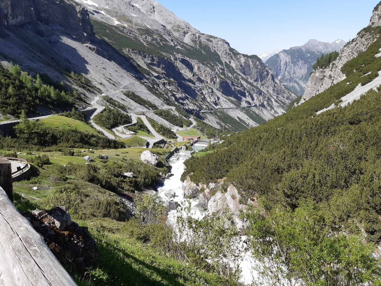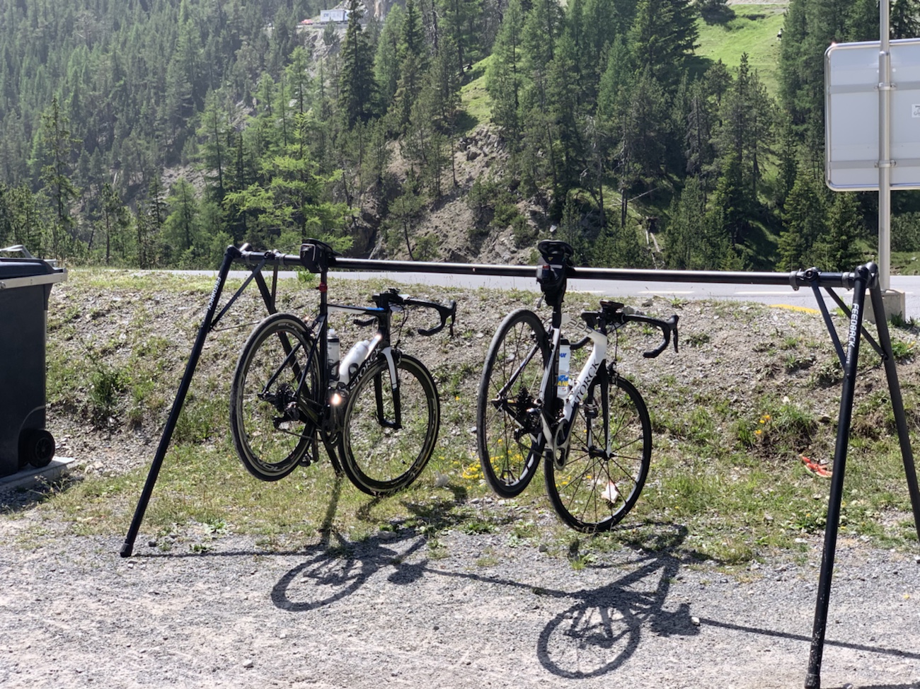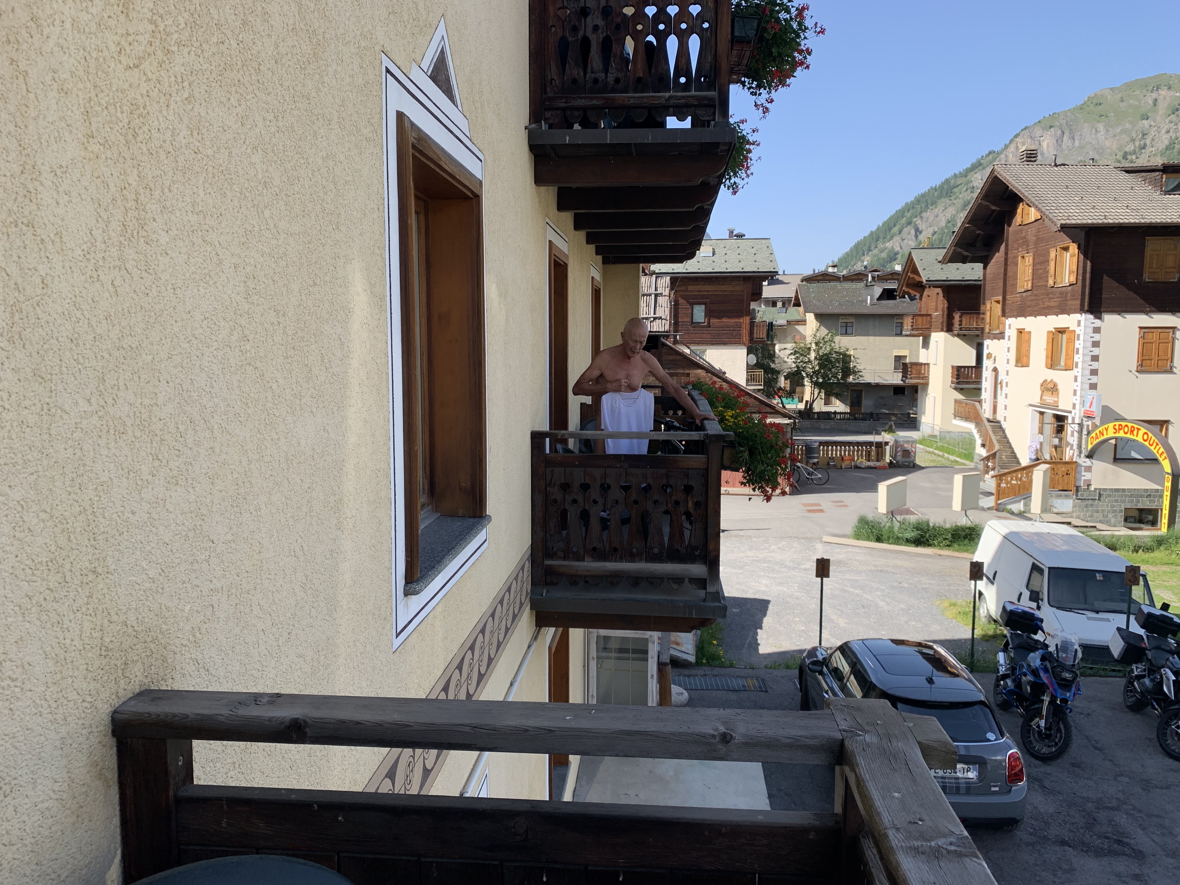 In Zernez in der Schweiz haben wir uns nach 70 km in den Postbus gesetzt und fahren jetzt mit dem nach Livigno. 40 Grad in der prallen Sonne und der Umbrailpass den wir auf 2850 Meter erklommen sind, haben ihre Spuren hinterlassen.