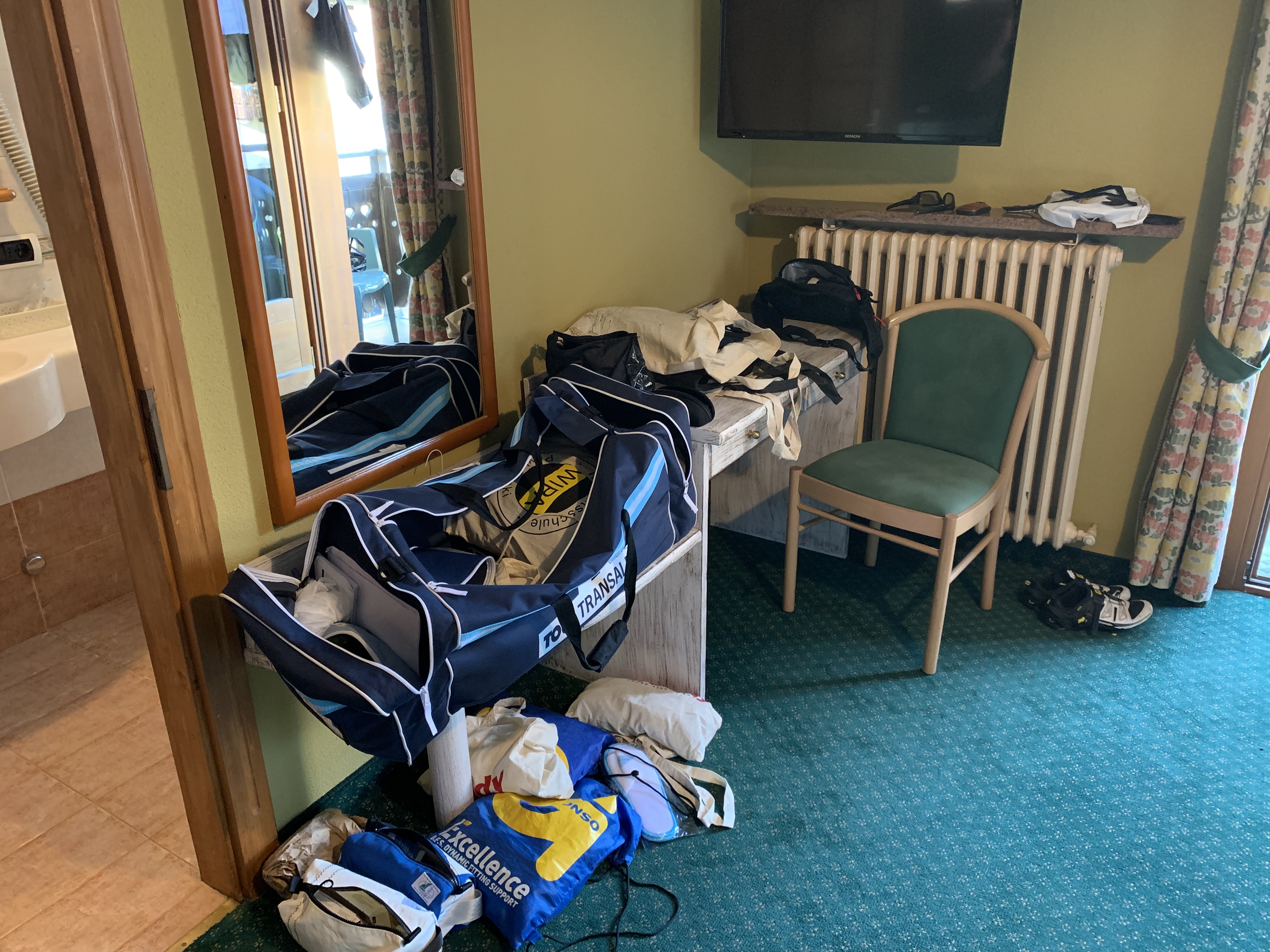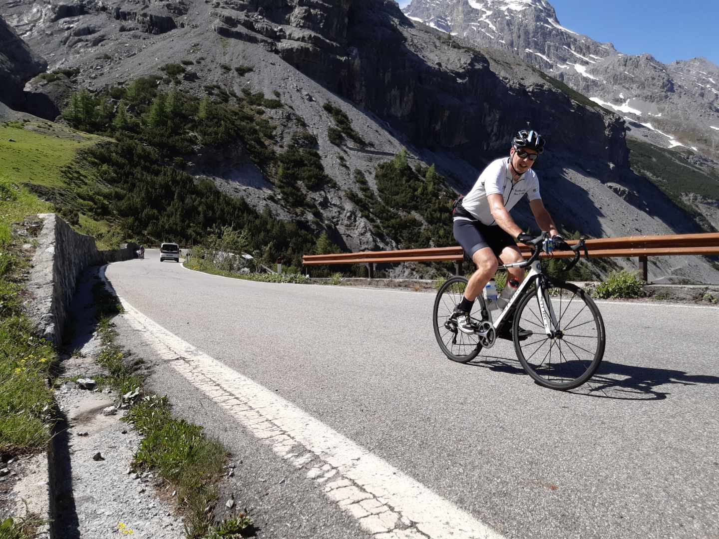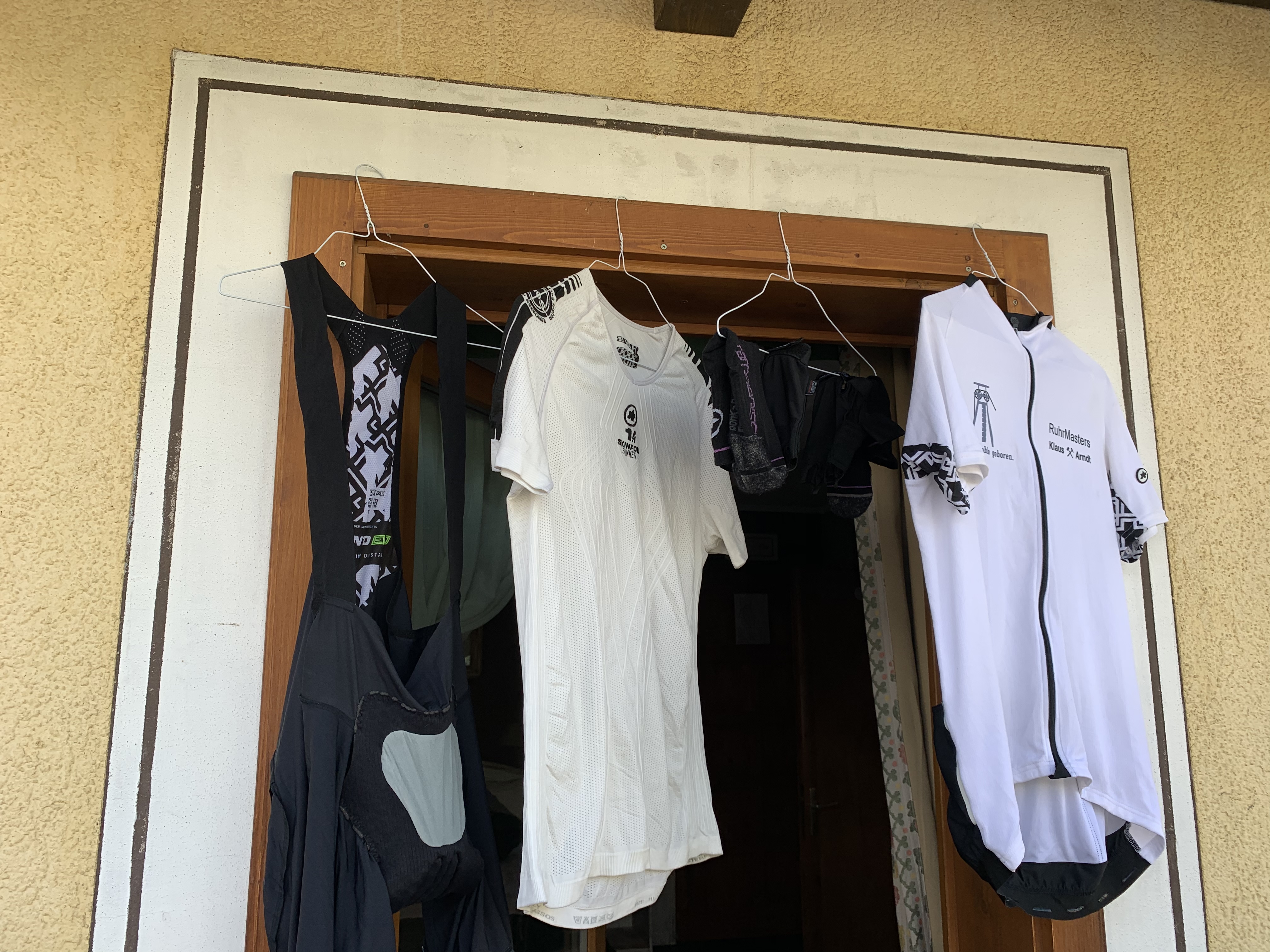In Zernez in der Schweiz haben wir uns nach 70 km in den Postbus gesetzt und fahren jetzt mit dem nach Livigno. 40 Grad in der prallen Sonne und der Umbrailpass den wir auf 2850 Meter erklommen sind, haben ihre Spuren hinterlassen.