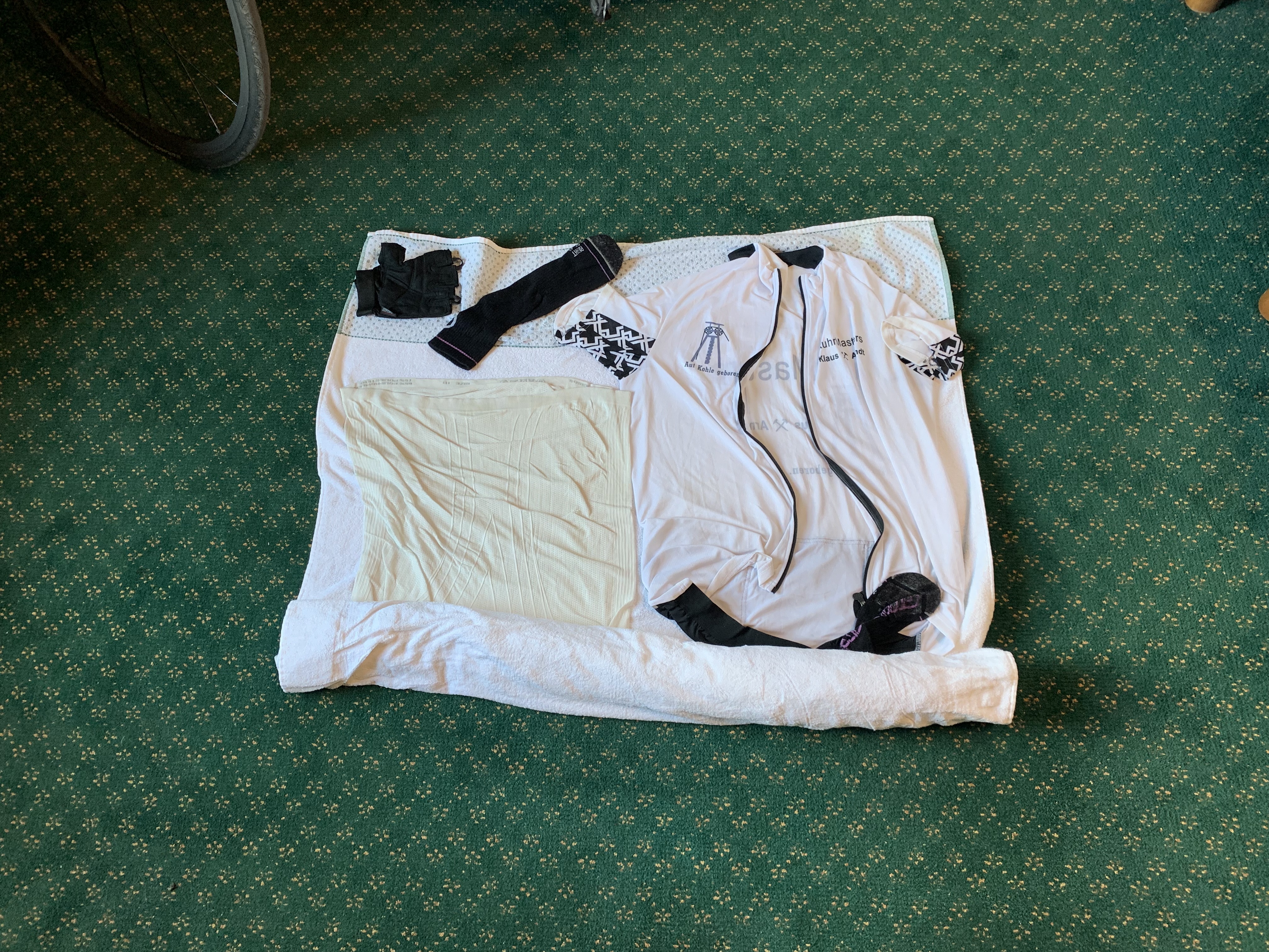 Ein Blog soll auch immer ein Ratgeber sein. Hier die Anleitung für die kleine Handwäsche und wie man diese ausreichend schnell trocken bekommt – siehe auch die Bilder weiter unten. Einfach die Wäsche in einem Handtuch einrollen und dabei ordentlich durchkneten. Danach ist der größte Teil des Wassers im Handtuch. Ein Tipp von Klaus.