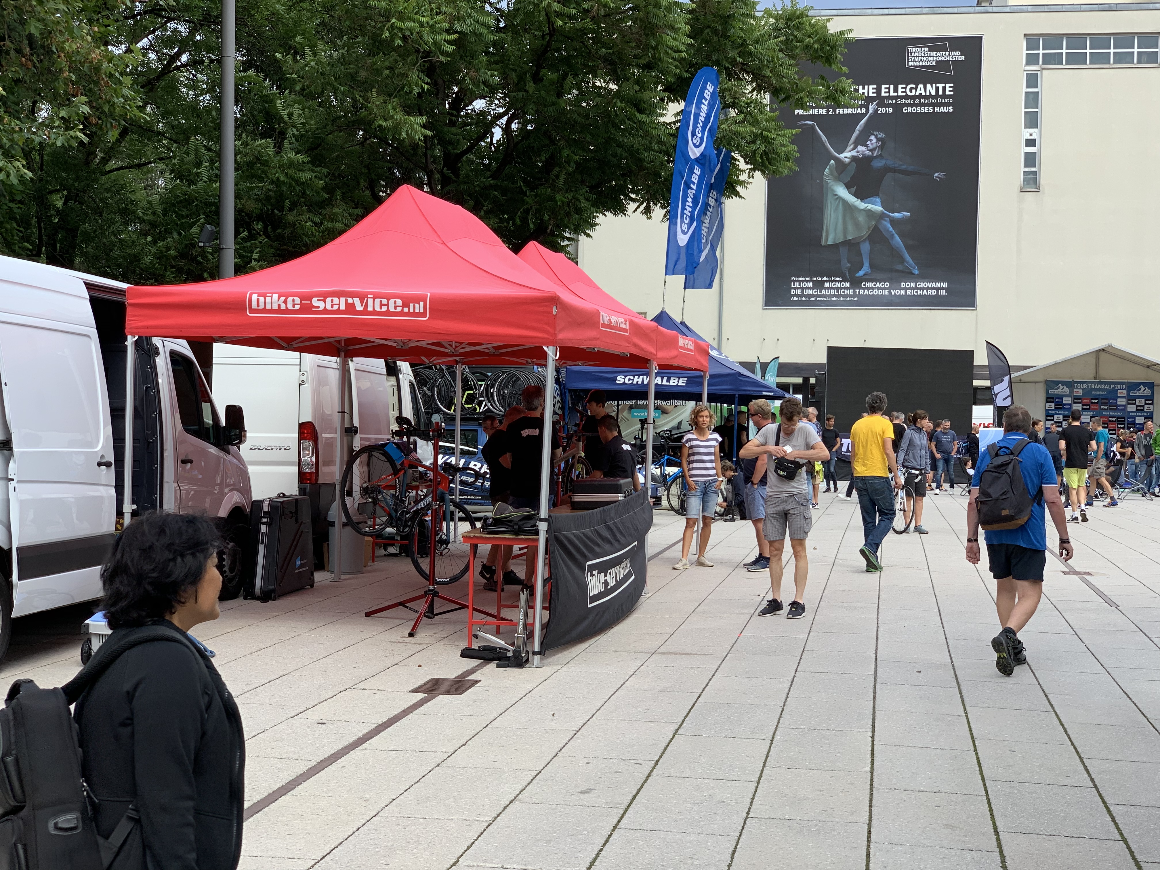 Die Akkreditierung in einem Hotel im alten Ortskern verlief reibungslos. Für morgen früh Bikepark und Startaufstellung sowie Abgabe der Taschen haben wir uns orientiert.