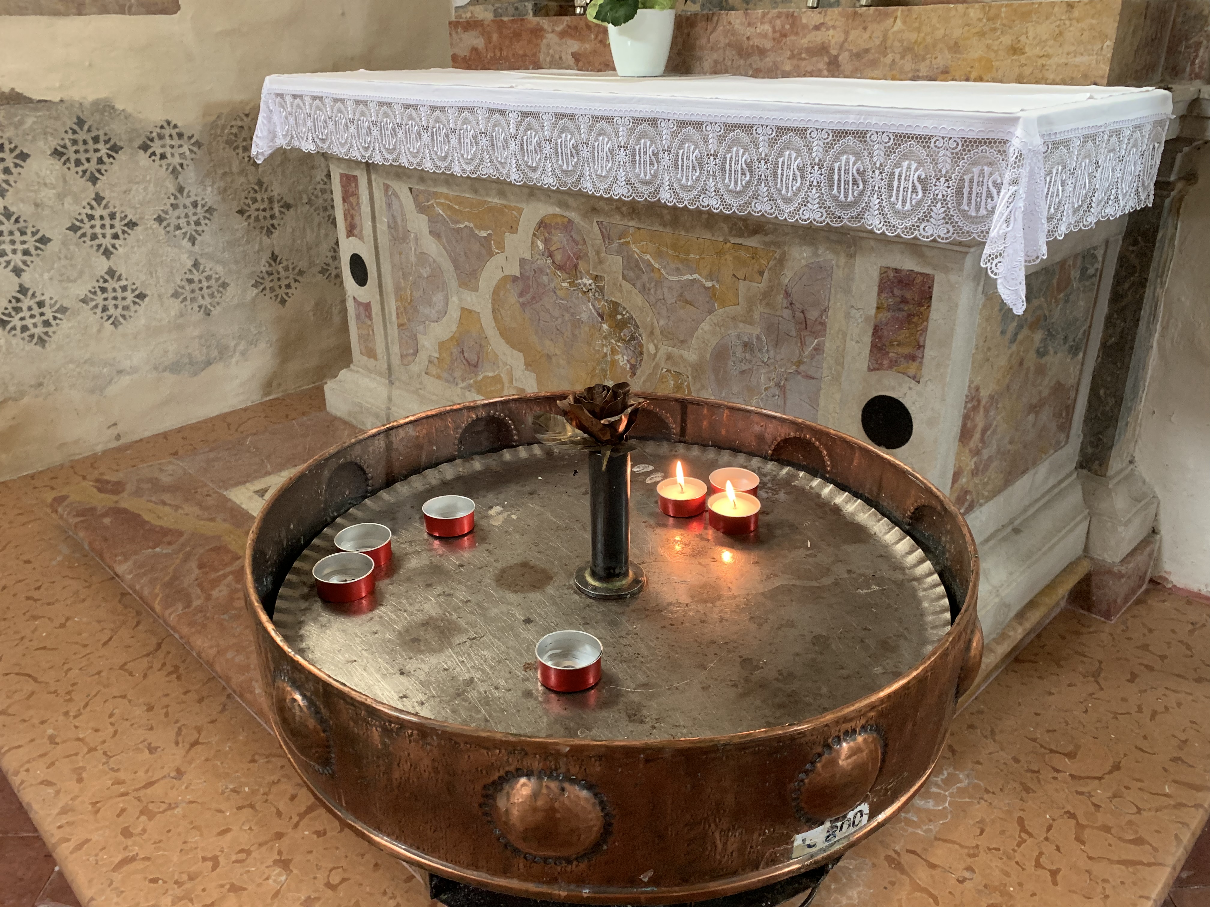 Zudem haben wir in Tenno in der alten Kirche mit wunderbaren Fresken zwei Kerzen entzündet.