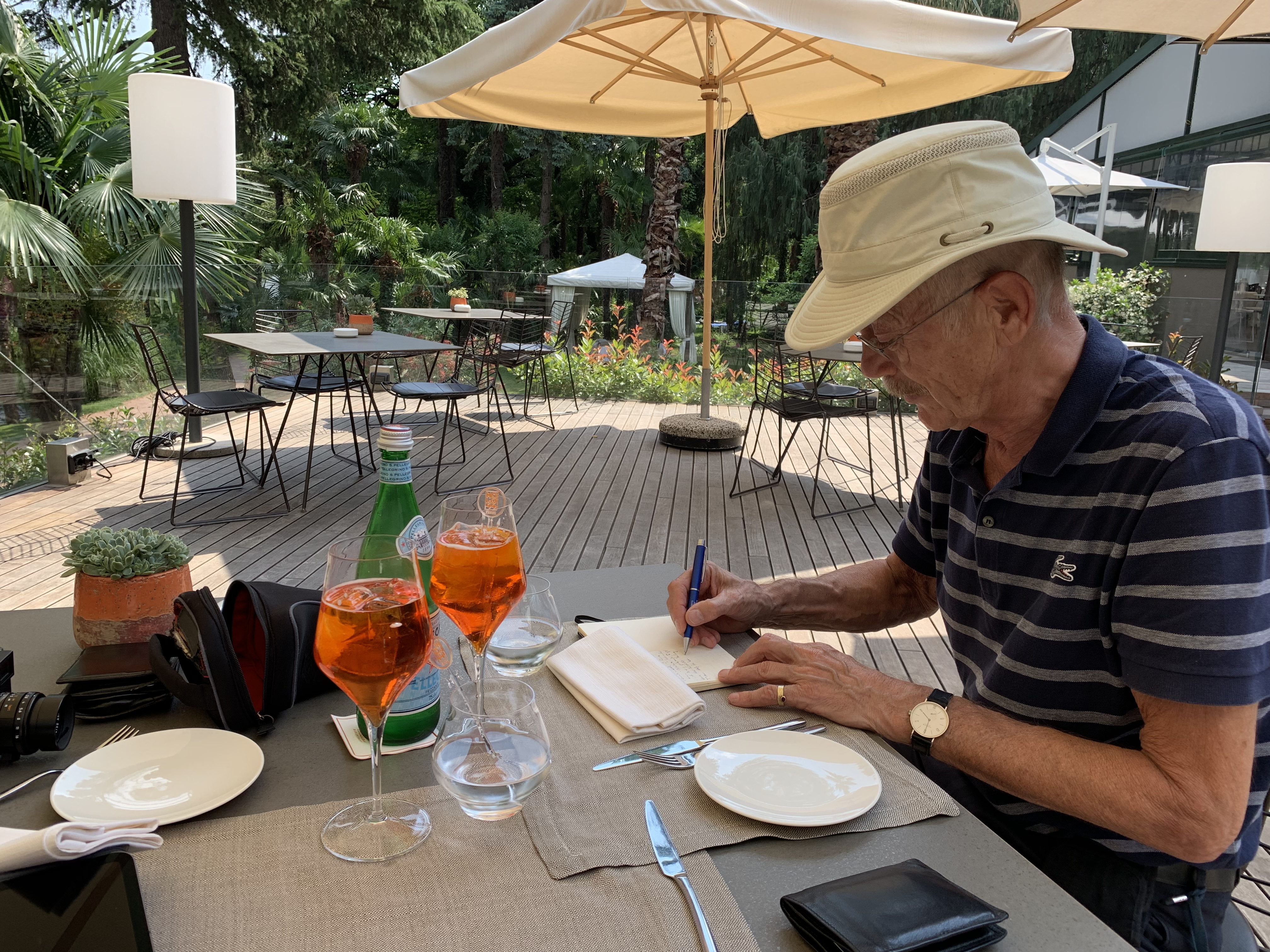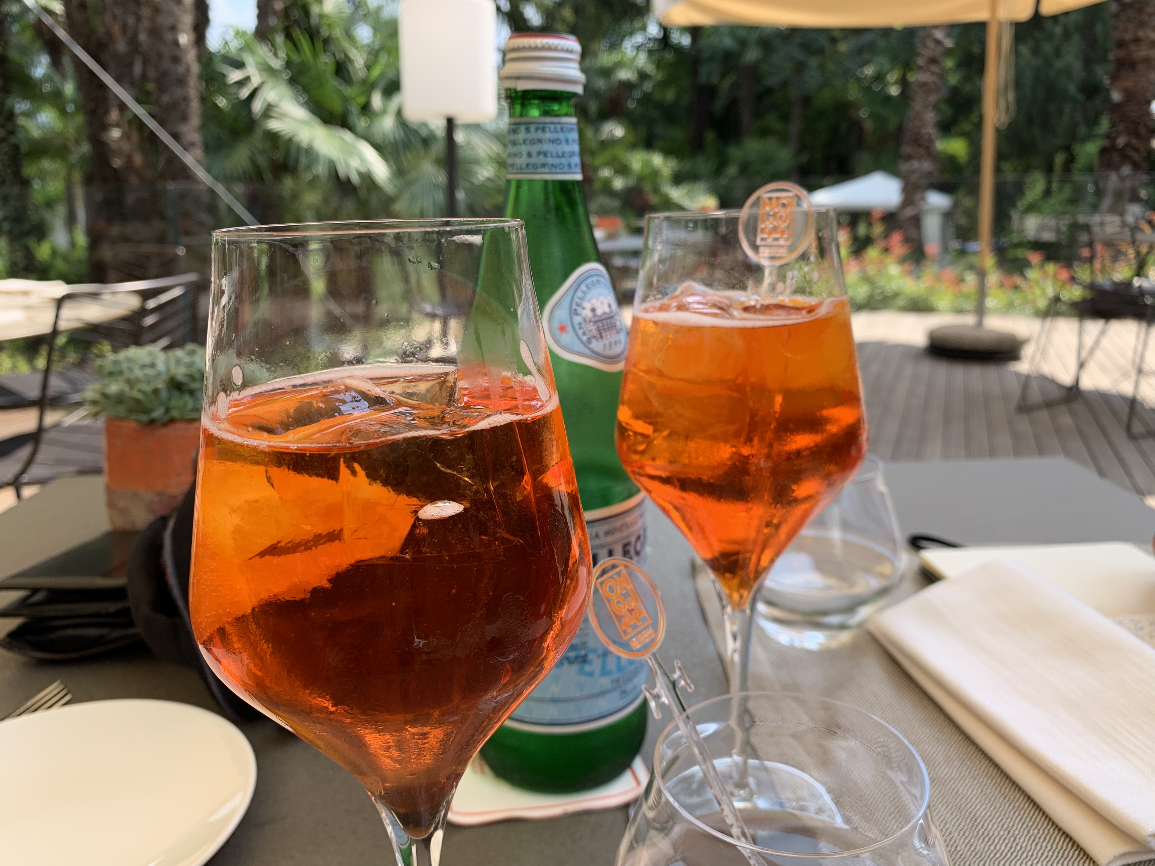 Auf der Trrasse im Park des du lac e du Park sitzen wir bei einem Aperol-Spritz und warten auf unsere Beefburger nach du lac Art.