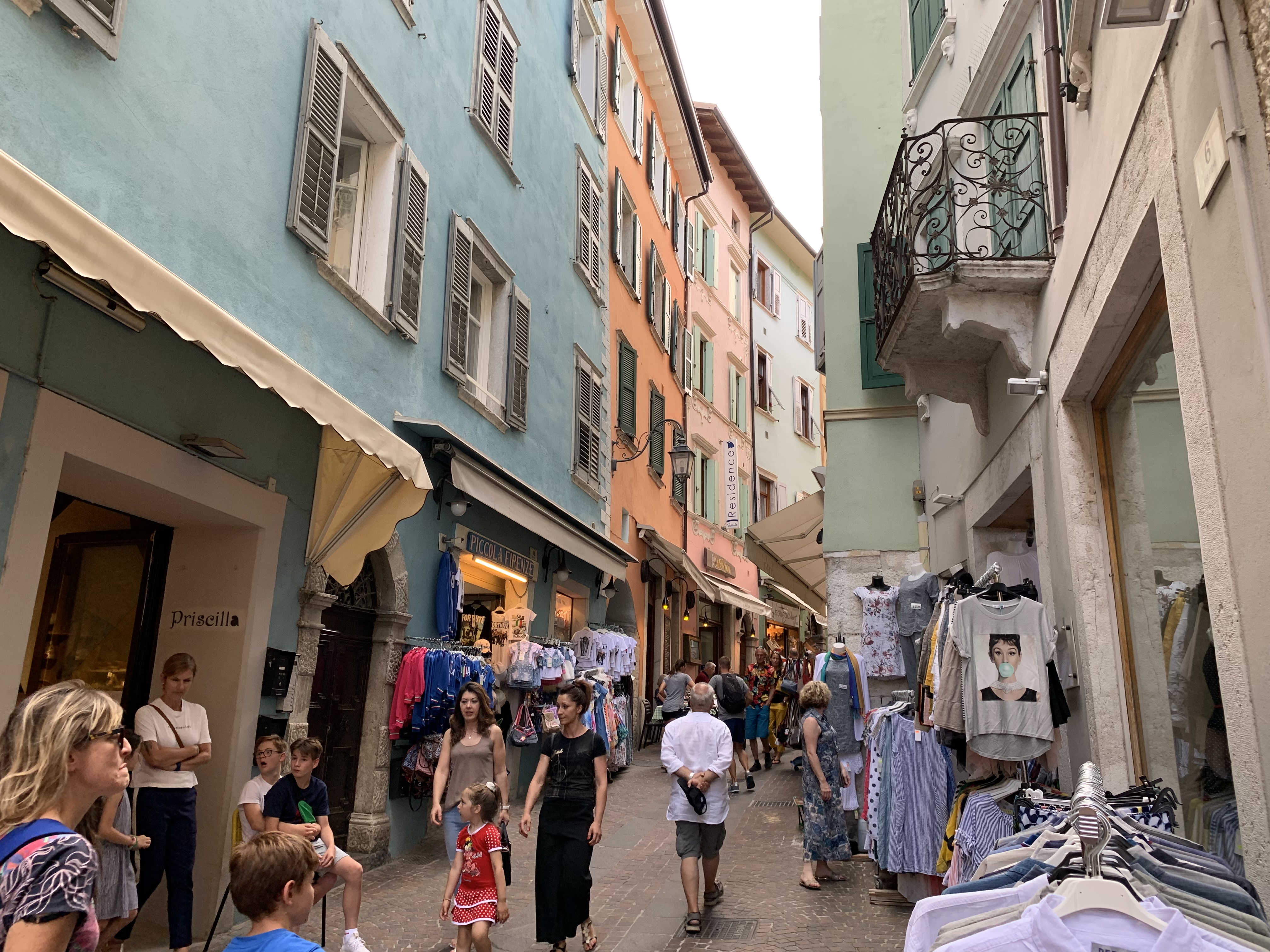 So schön ist Riva del Garda. In der Zwischenzeit ist es 22:00 Uhr und wir haben Mittsommernacht. Der See war in magisches Licht getaucht. In den Gassen der Altstadt flanieren und und genießen die Menschen den wunderbaren Abend.