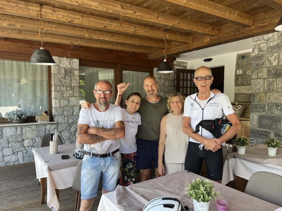In einer Pizzeria hat uns die Familie ein Taxi organisiert und uns mit der Familie zusammen zum Mittagessen eingeladen: Es gab ein hervorragende Risotto, eine Aufschnittplatte, Salt, Bier und Espresso – alles auf Einladung der Familie. Wir sagen DANKE und habe Eure Gastfreundschaft und Herzlichkeit sehr genossen.
