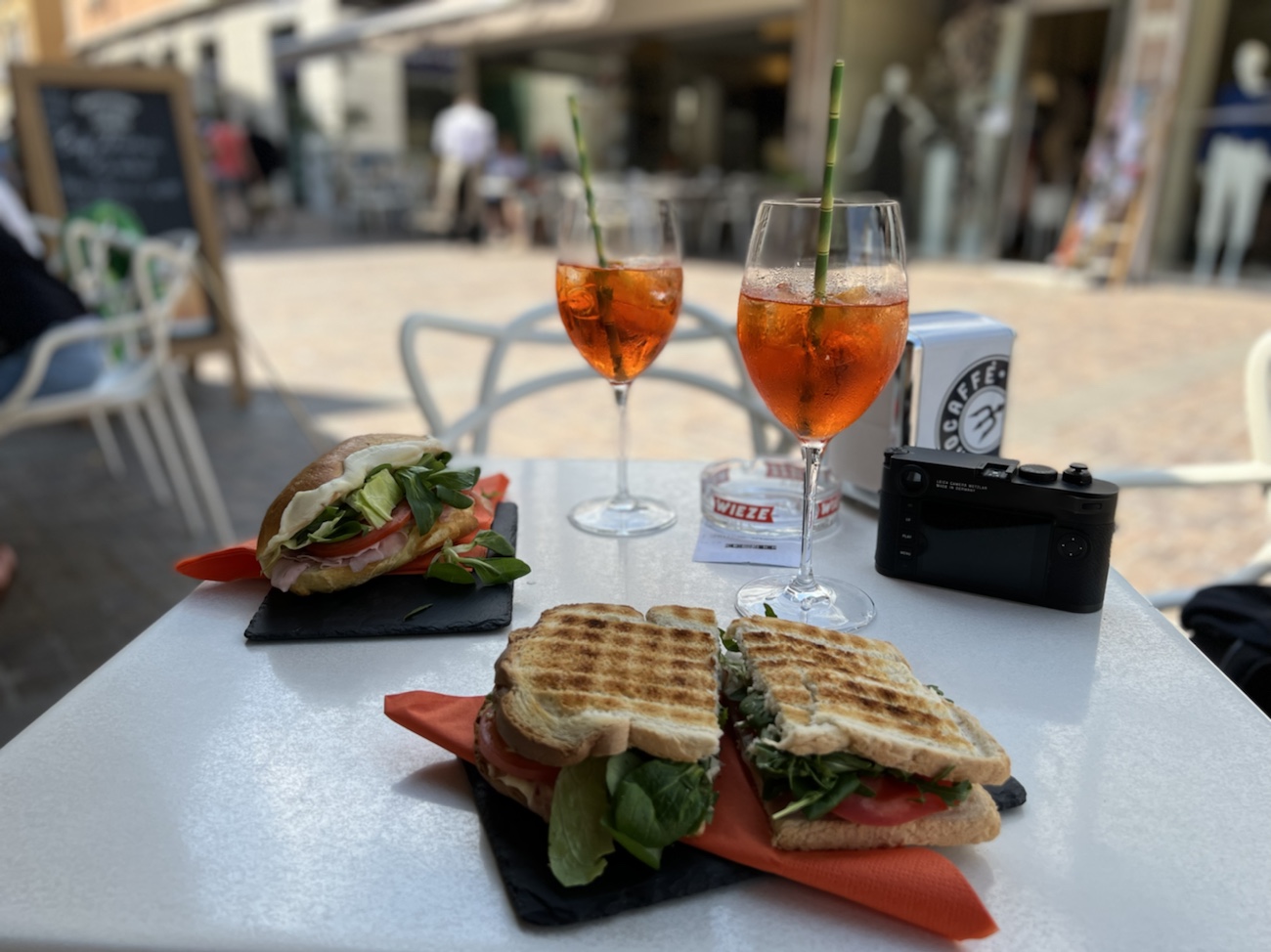 Den frühen Nachmittag haben wir am See in einem italienischen Bistro sitzend verbracht, italienischen Toast ein Aperol Spritz und ein Espresso Macchiato genossen.